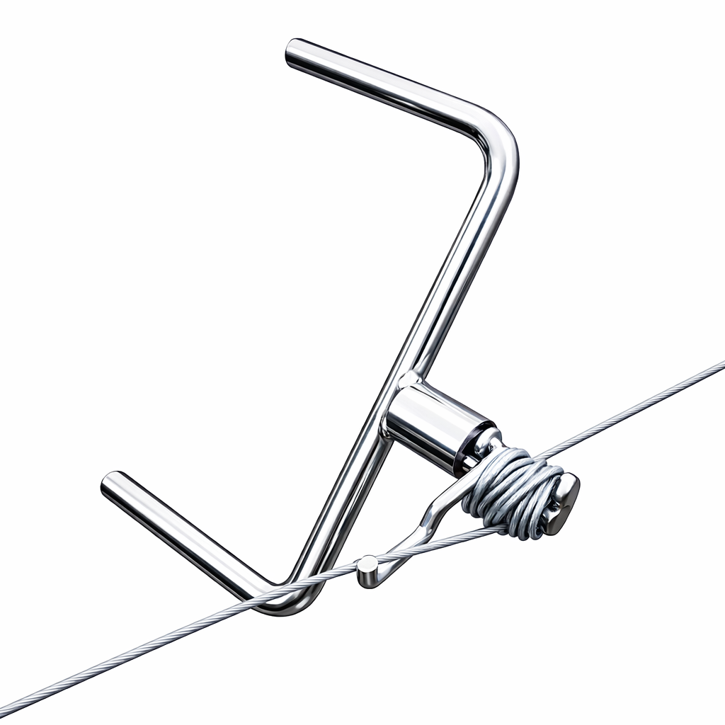 Pour le mettre en œuvre, il suffit de glisser le fil entre les deux brins et de tourner la clé jusqu’à obtention de la tension voulue.